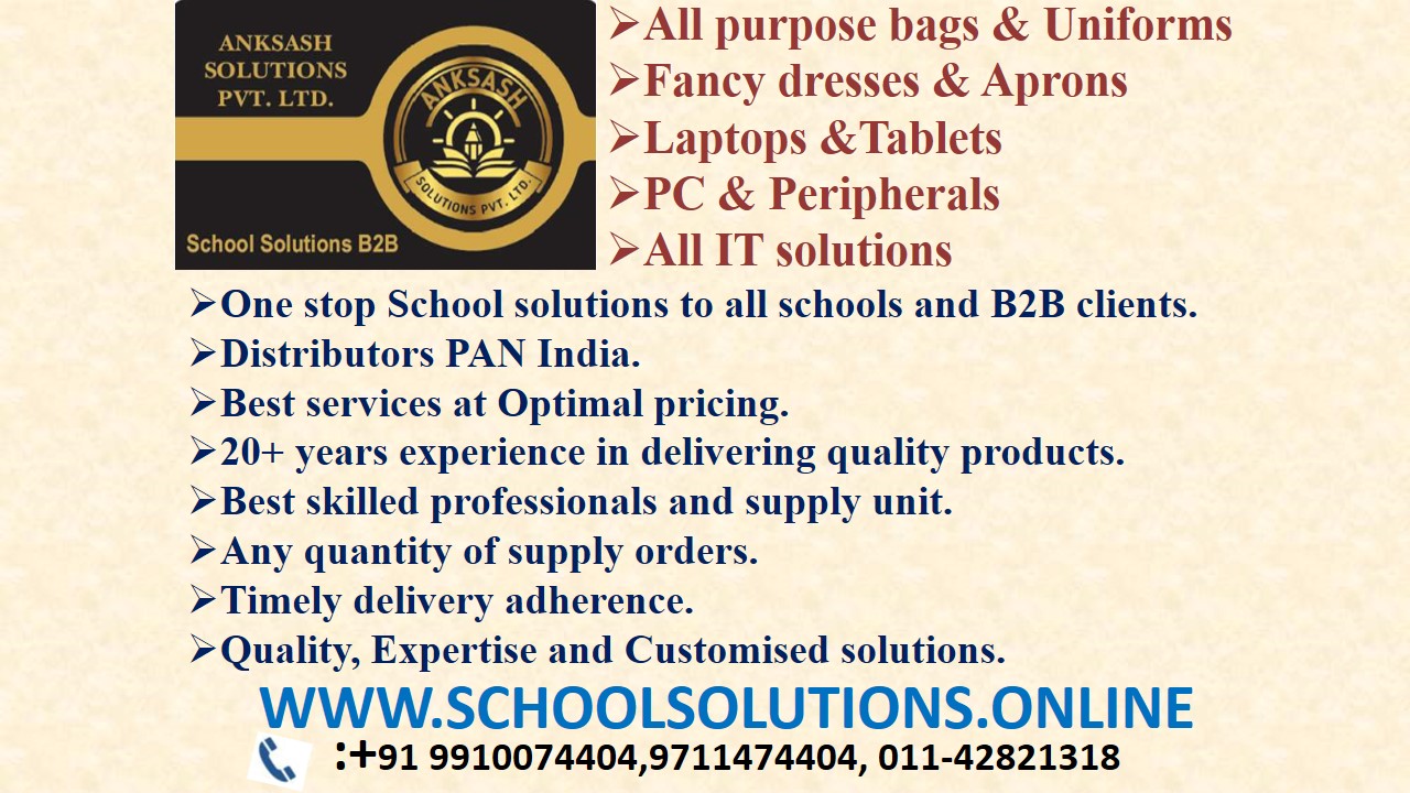We are the manufacturers and wholesellers of School bags,Publication Bags,Toddlers uniforms, School uniforms and all kind of uniforms. We also provide customized solutions as per customer's requirement Read more...